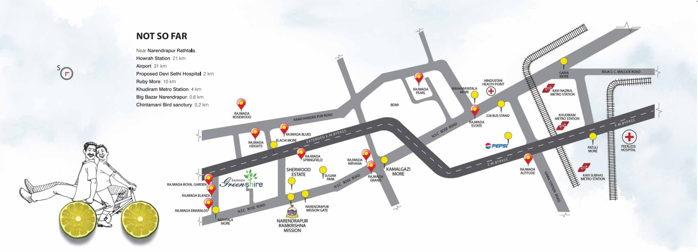 • Some popular transit points closest to Rajwada Greenshire are Narendrapur railway station, Sonarpur junction railway station and Shahid khudiram metro station. Out of this, Narendrapur railway station is the nearest from this location.